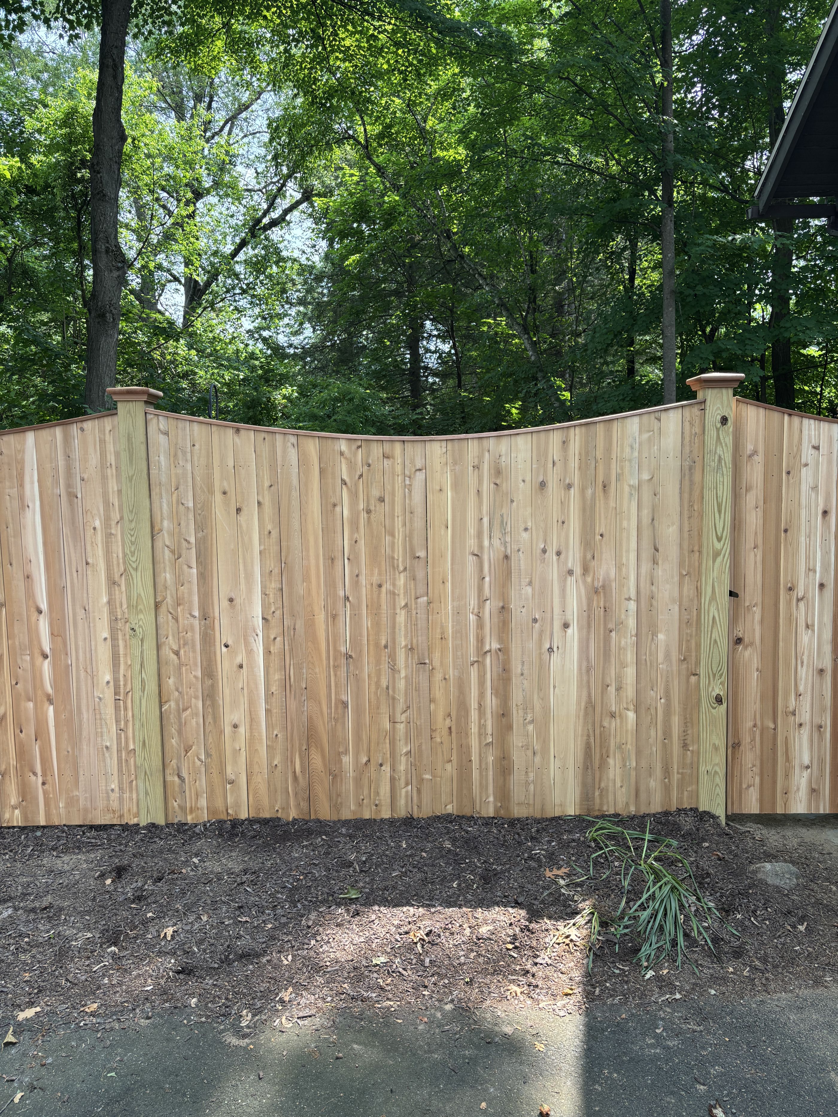 I was very happy with this entire project, turning a neighborhood eyesore into a showpiece. John laid out all the options at the start of the project, and I went with the high-end model. The installation crew was friendly and did a great job dealing with existing roots and vines along the old fence line to keep the new fence straight and level. Now as I put the finishing touches on the landscaping around the fence, drivers screech to a halt to tell me how much they love the new fence. Good fences do indeed make good neighbors.
